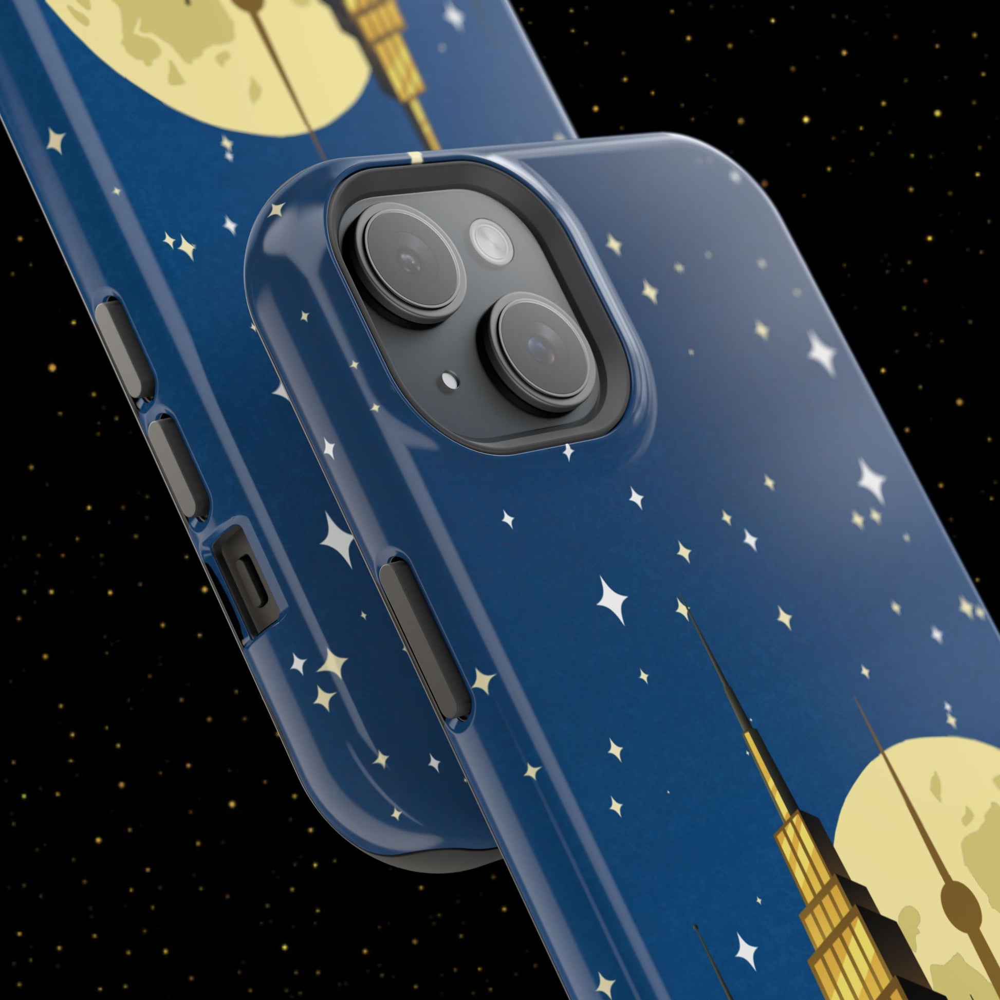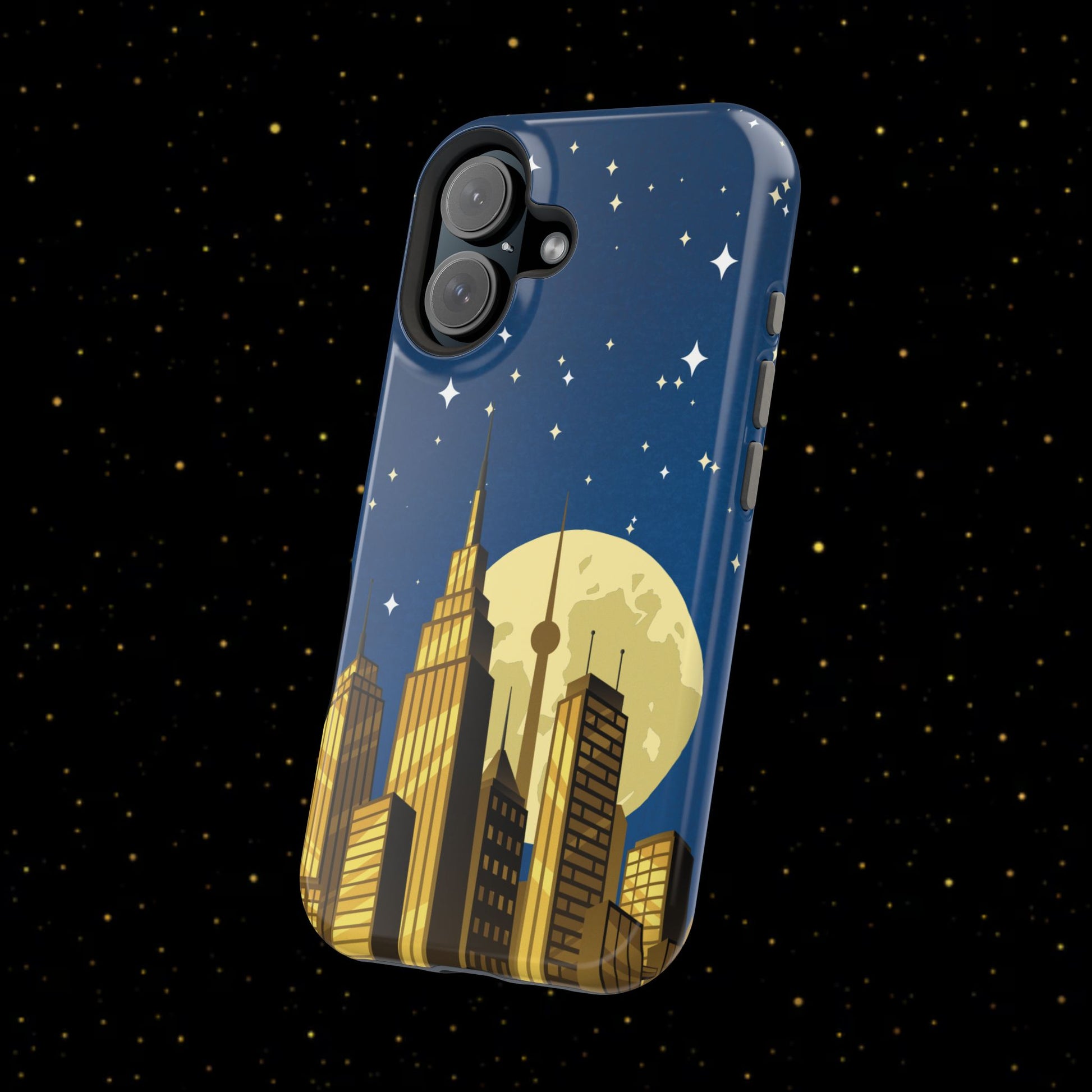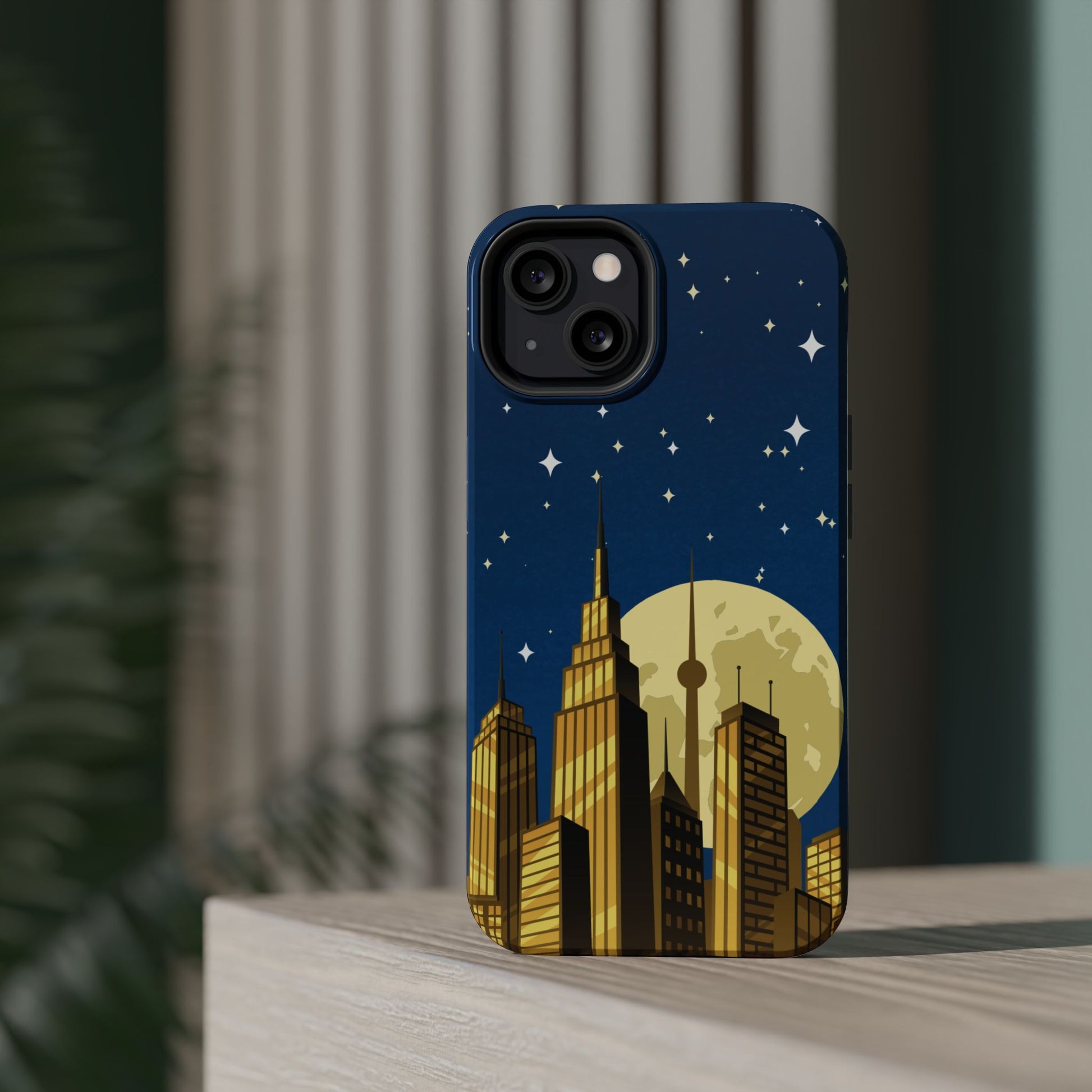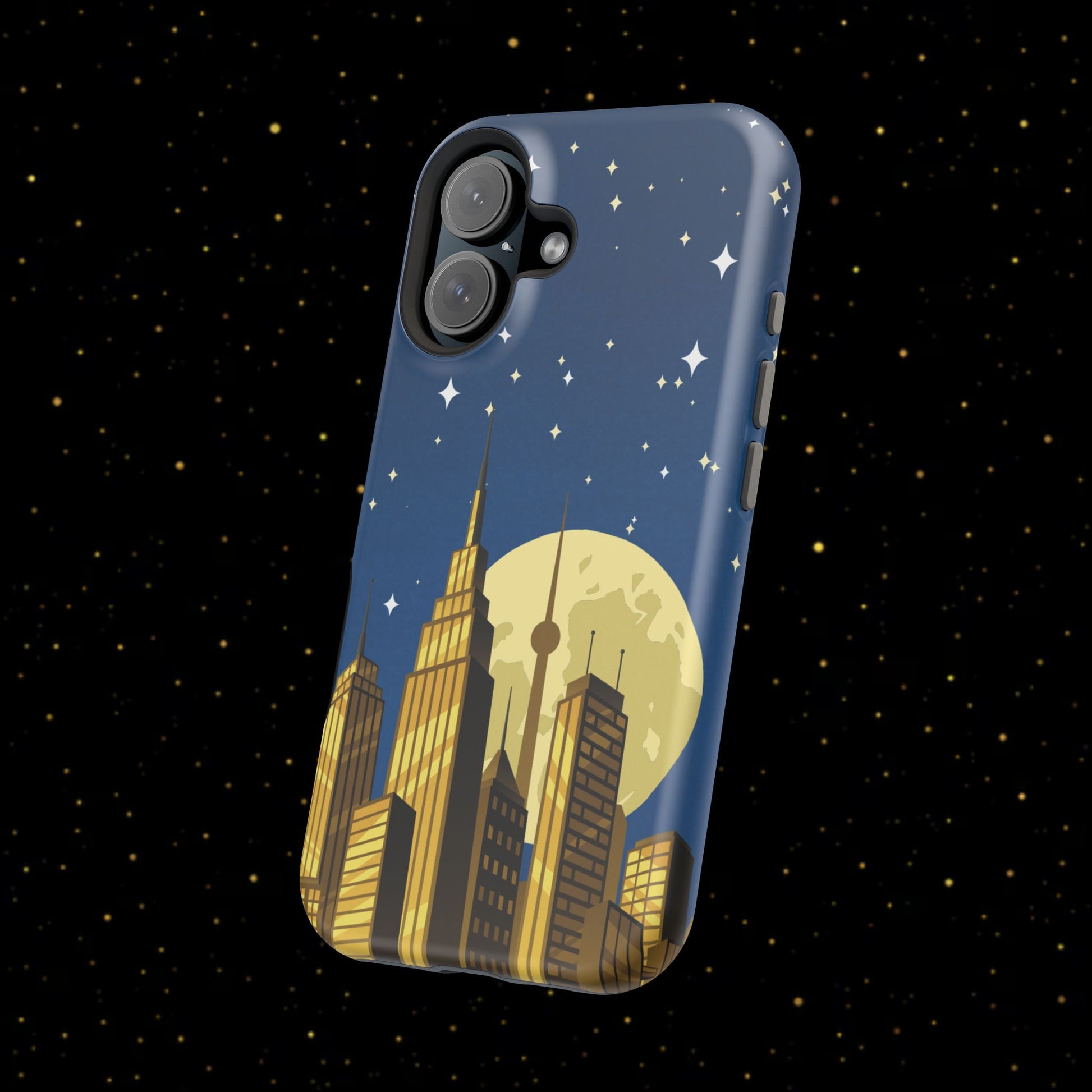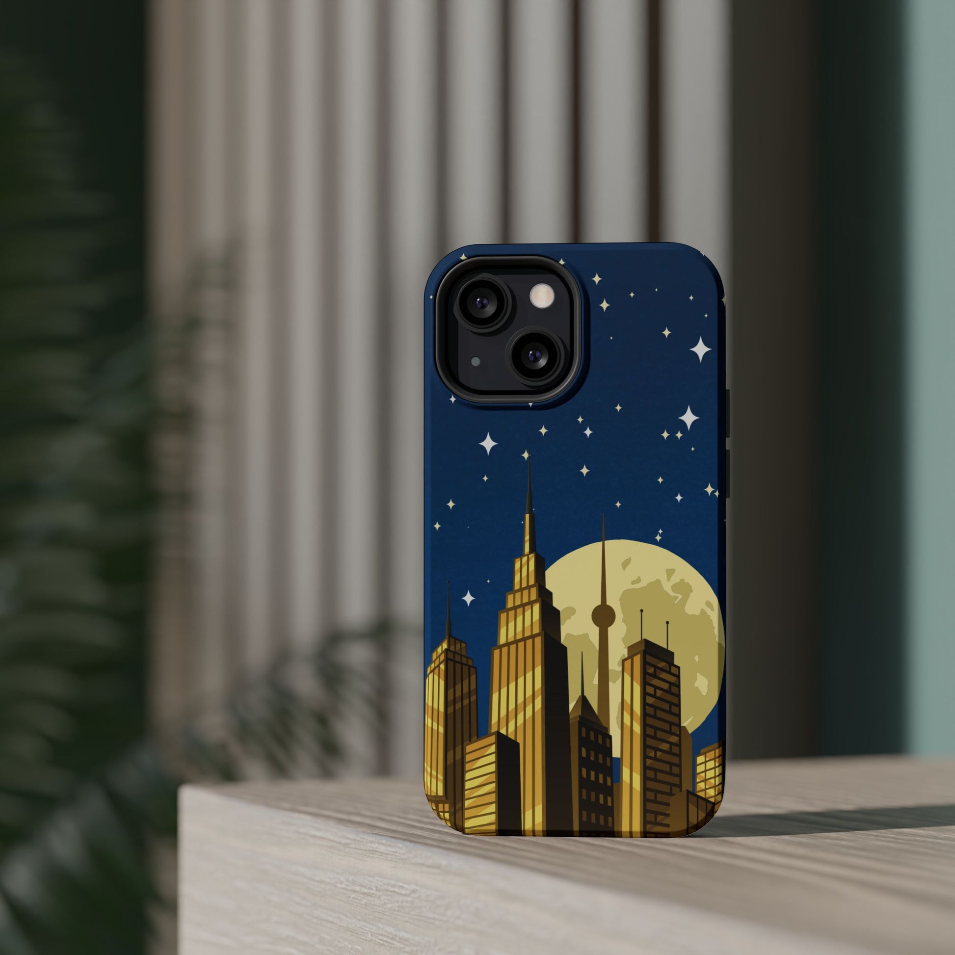 Diese stoßfeste Handyhülle mit Mondschein-Skyline vereint urbanen Stil mit robustem Zweischichtschutz. Erhältlich in matt oder glänzend für einen eleganten Look und zuverlässigen Alltagsgebrauch.