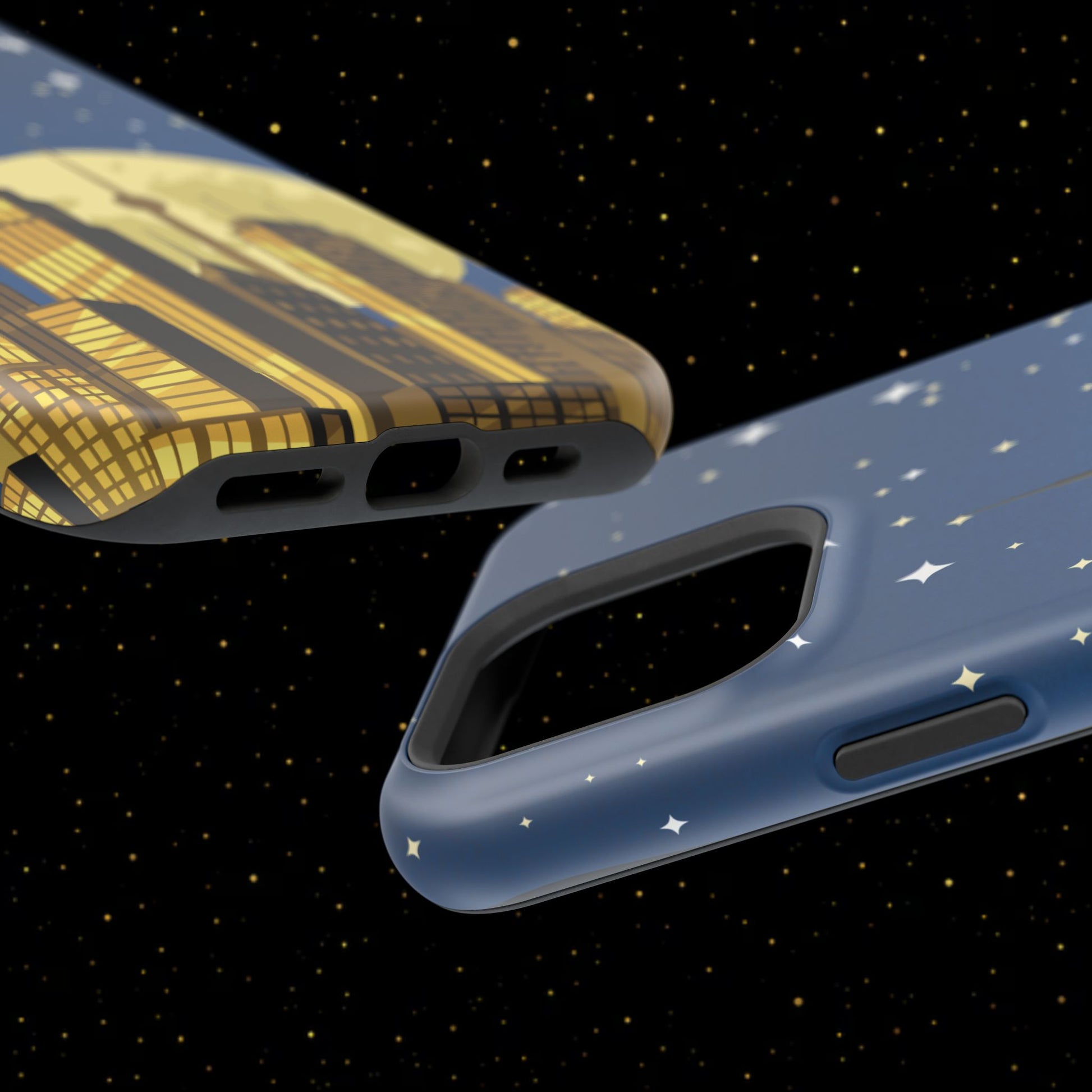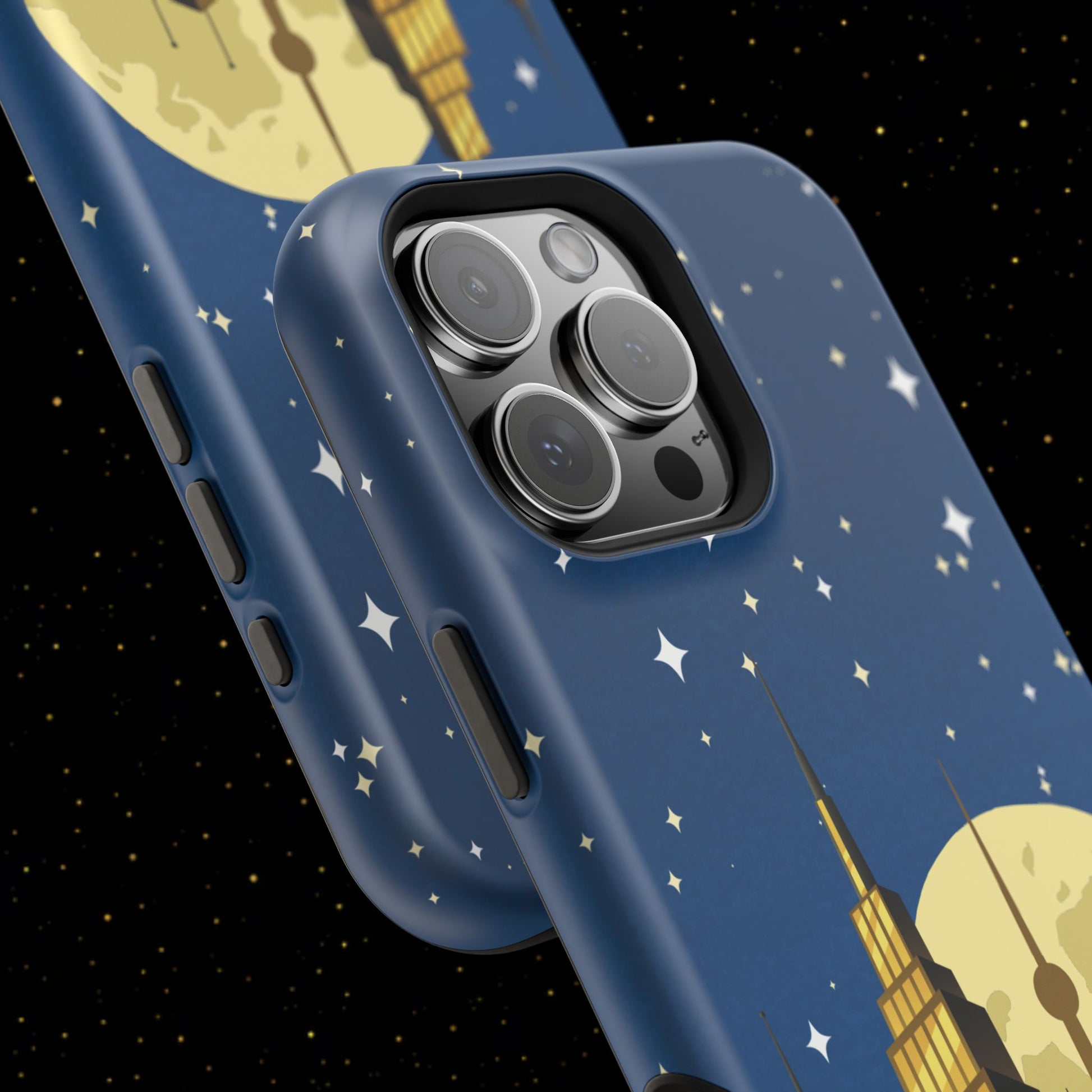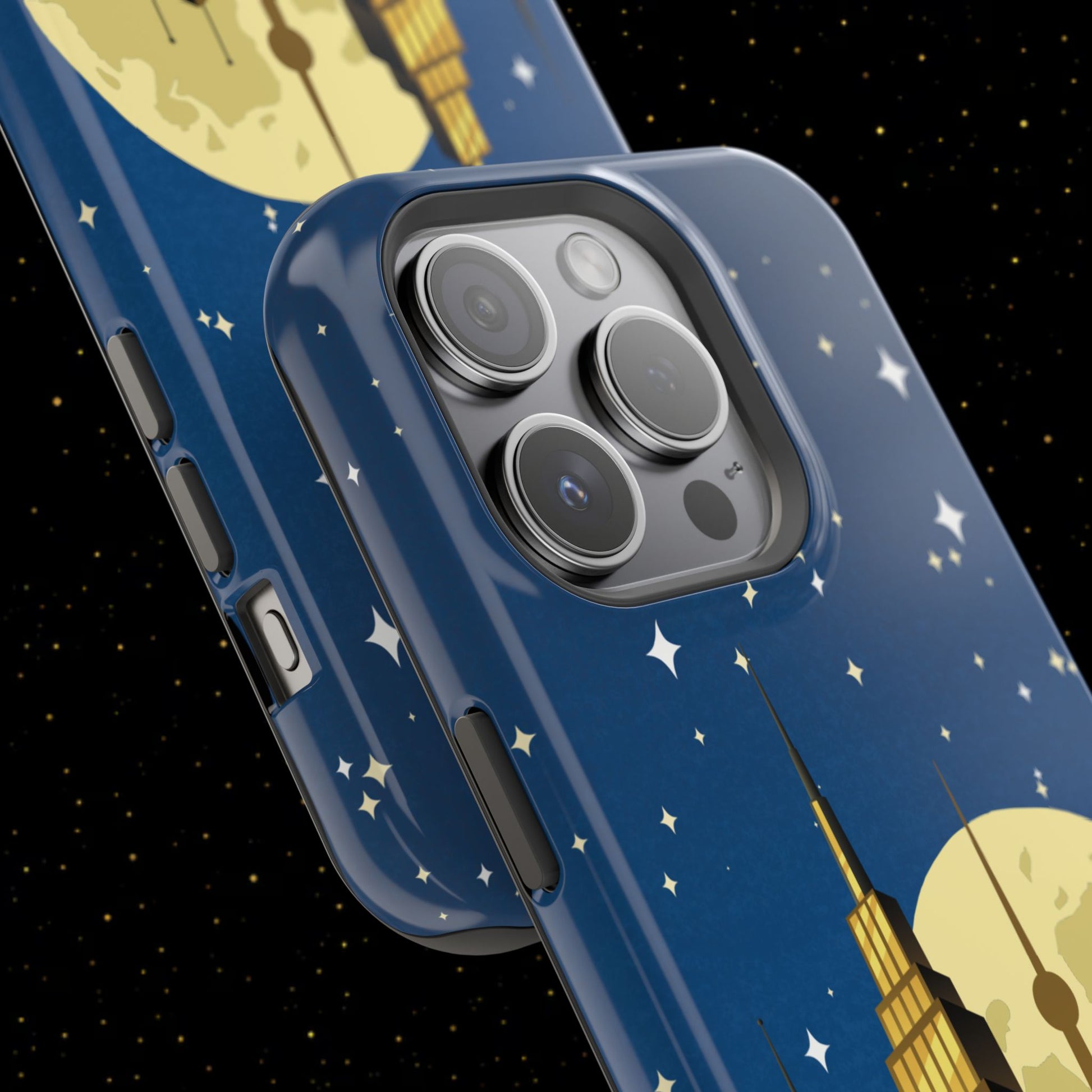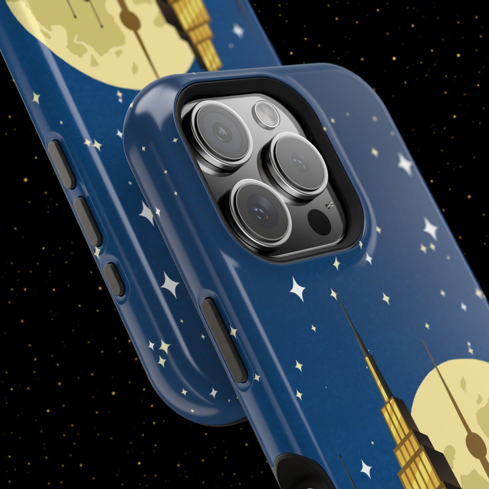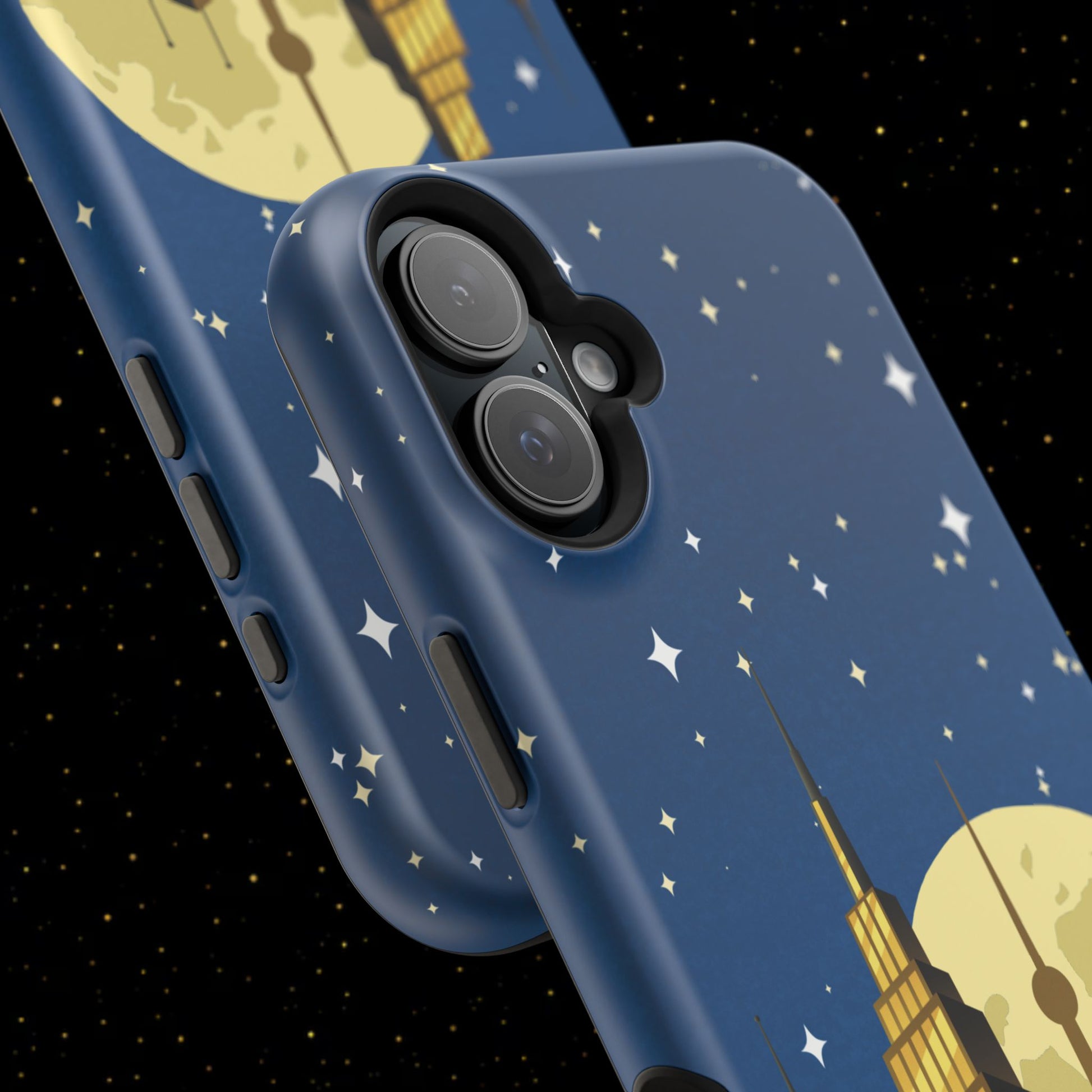 Diese stoßfeste Handyhülle mit Mondschein-Skyline vereint urbanen Stil mit robustem Zweischichtschutz. Erhältlich in matt oder glänzend für einen eleganten Look und zuverlässigen Alltagsgebrauch.