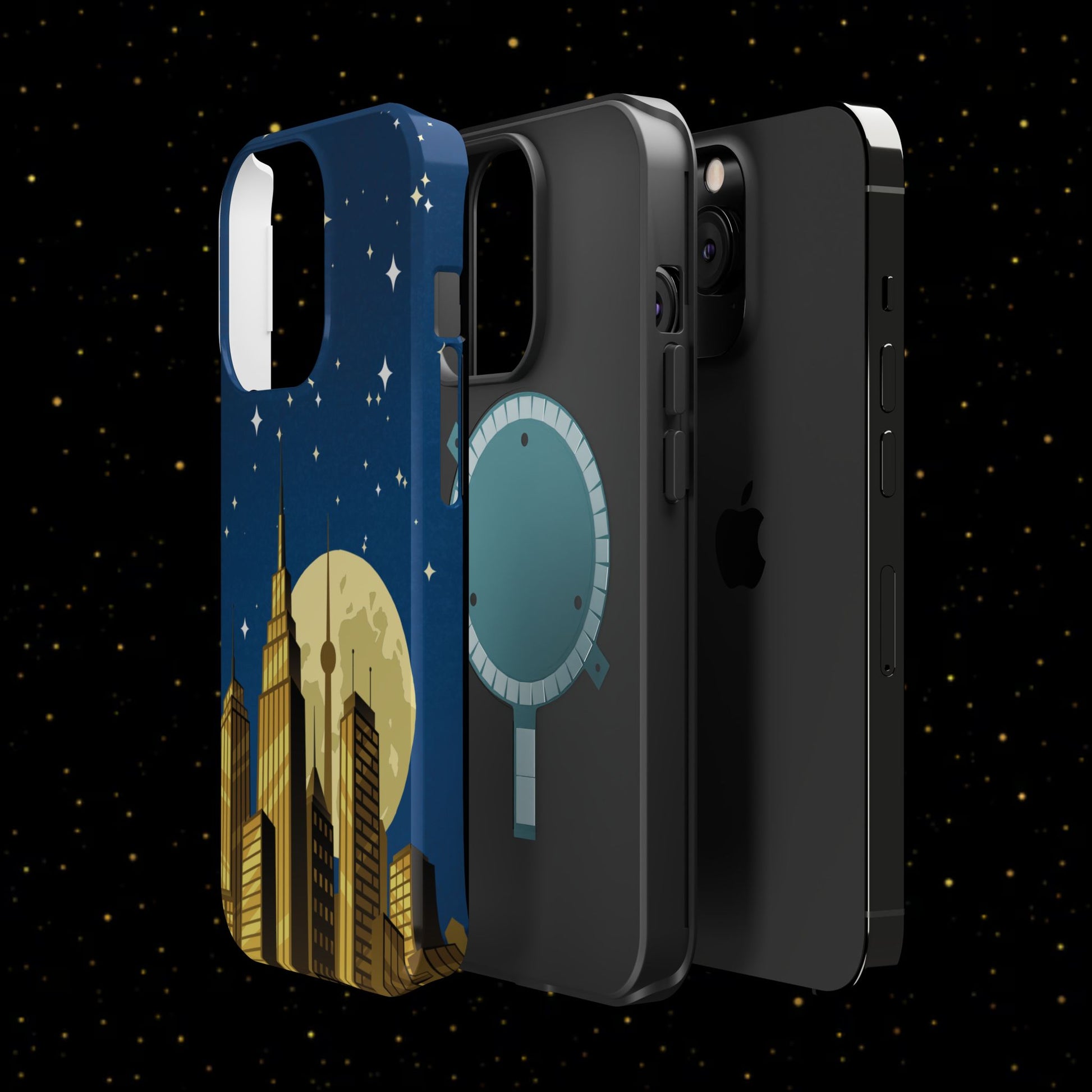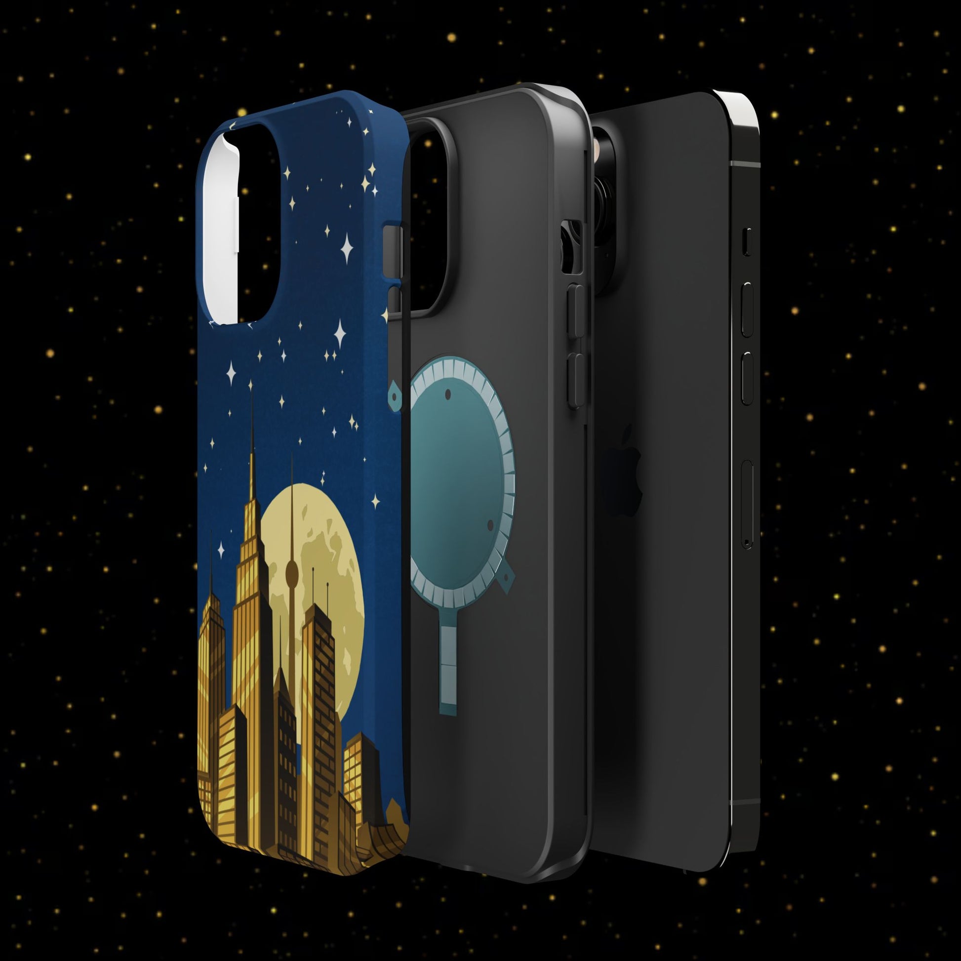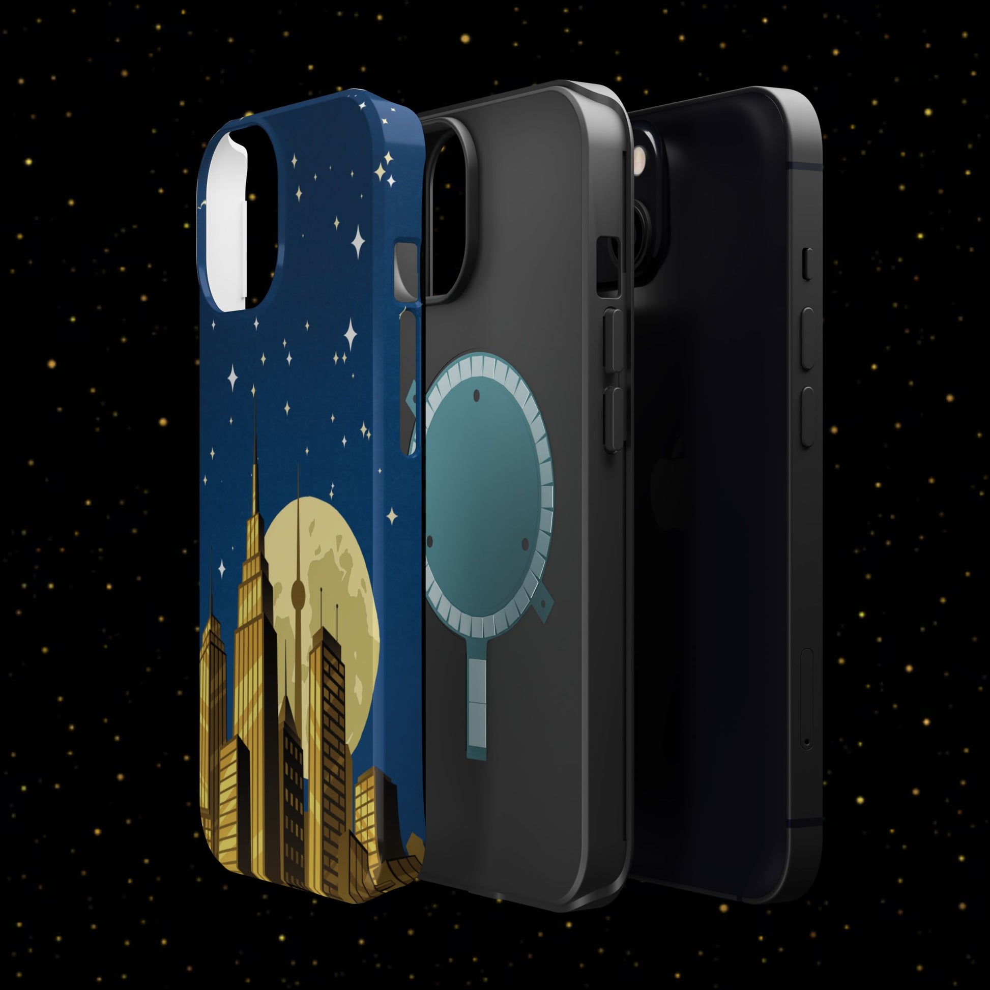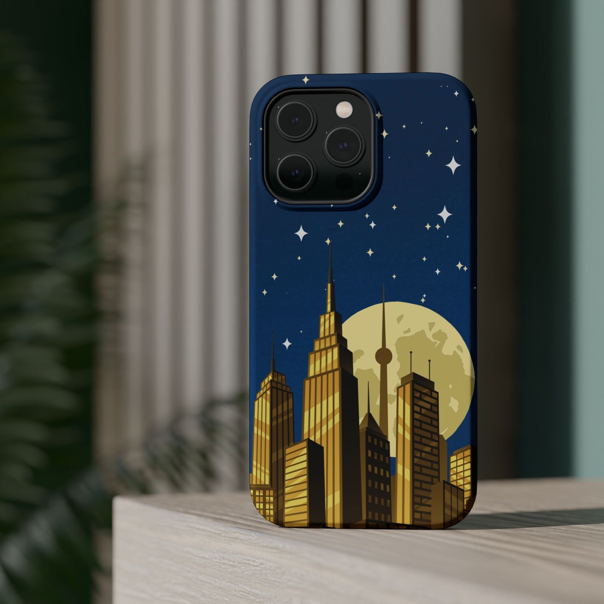 Magnetische Handyhülle mit Stadtpanorama und Mondnacht