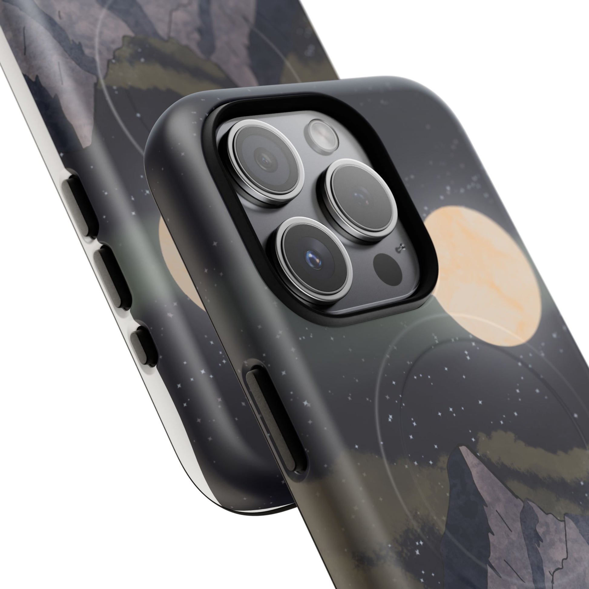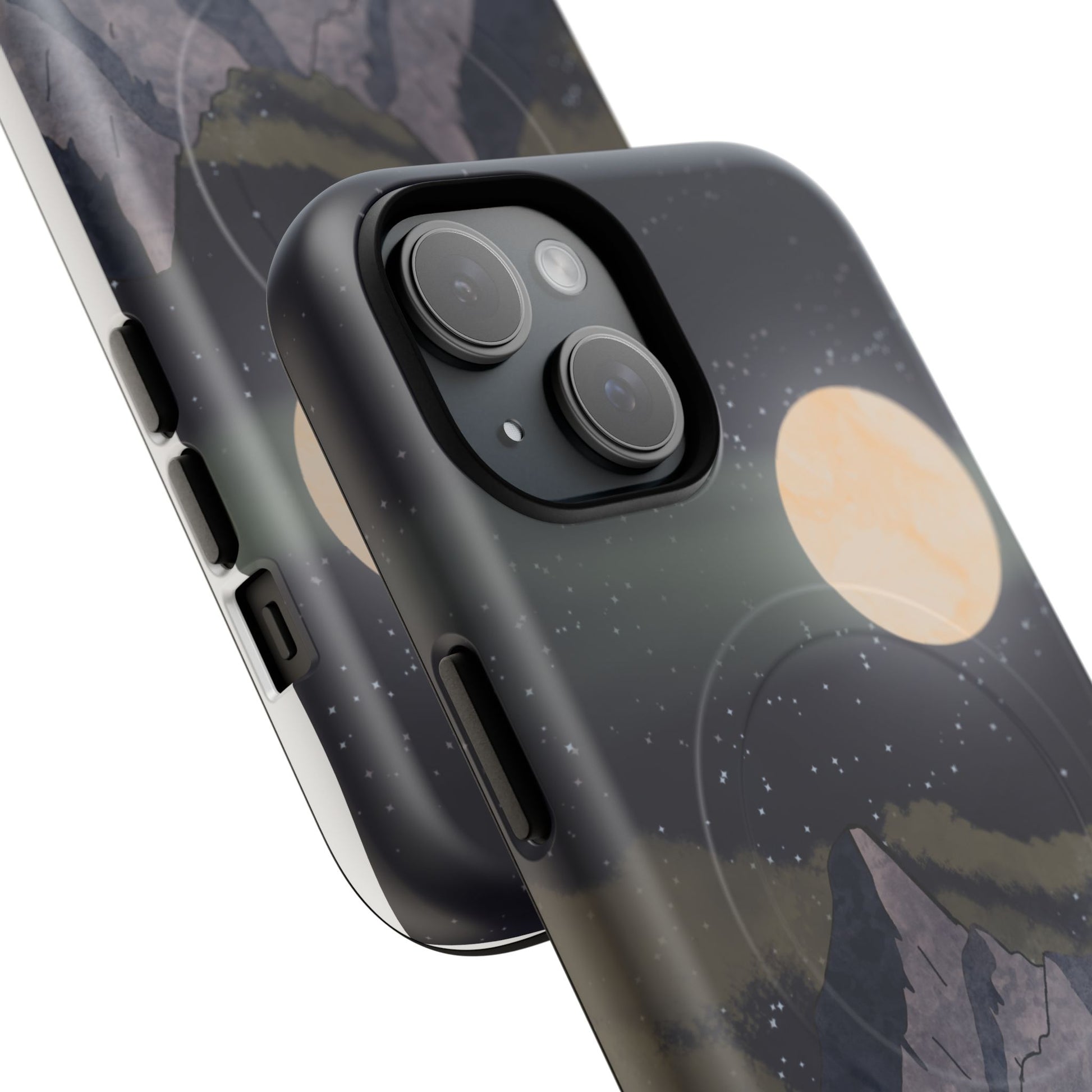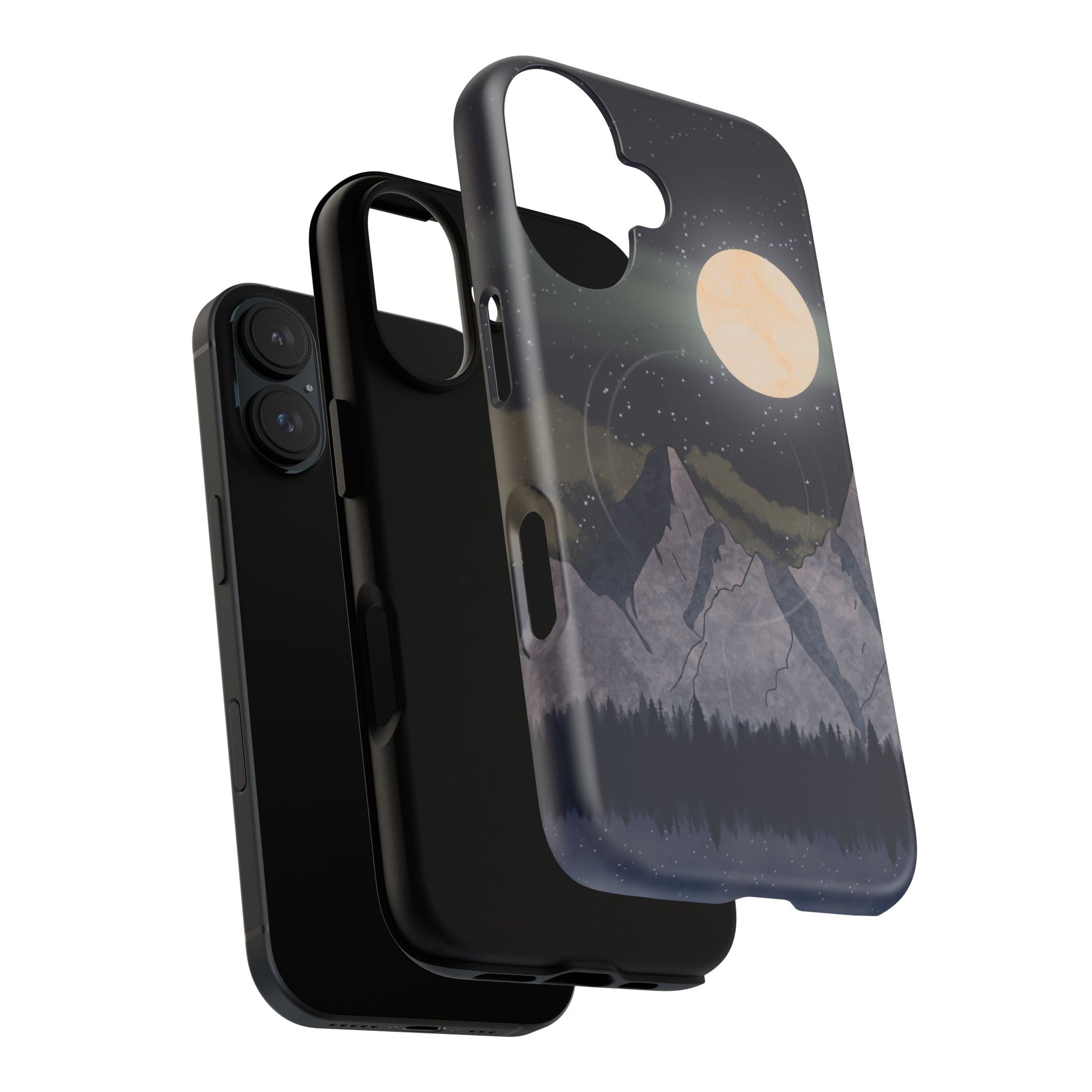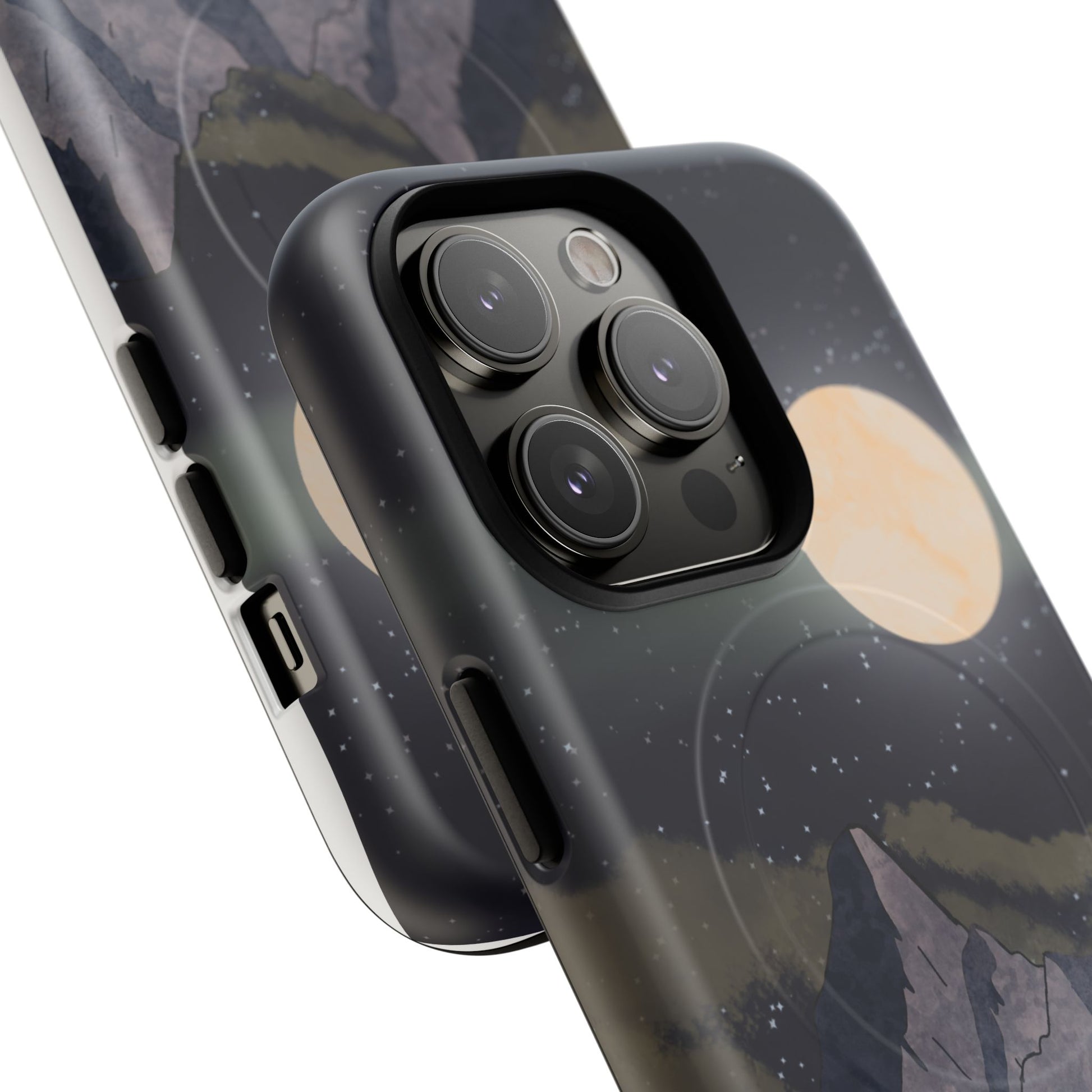 Eine robuste magnetische Handyhülle mit einem ruhigen Bergpanorama bei Nacht, zweilagigem Schutz und MagSafe®-Kompatibilität für sicheren und stilvollen Schutz im Alltag.
