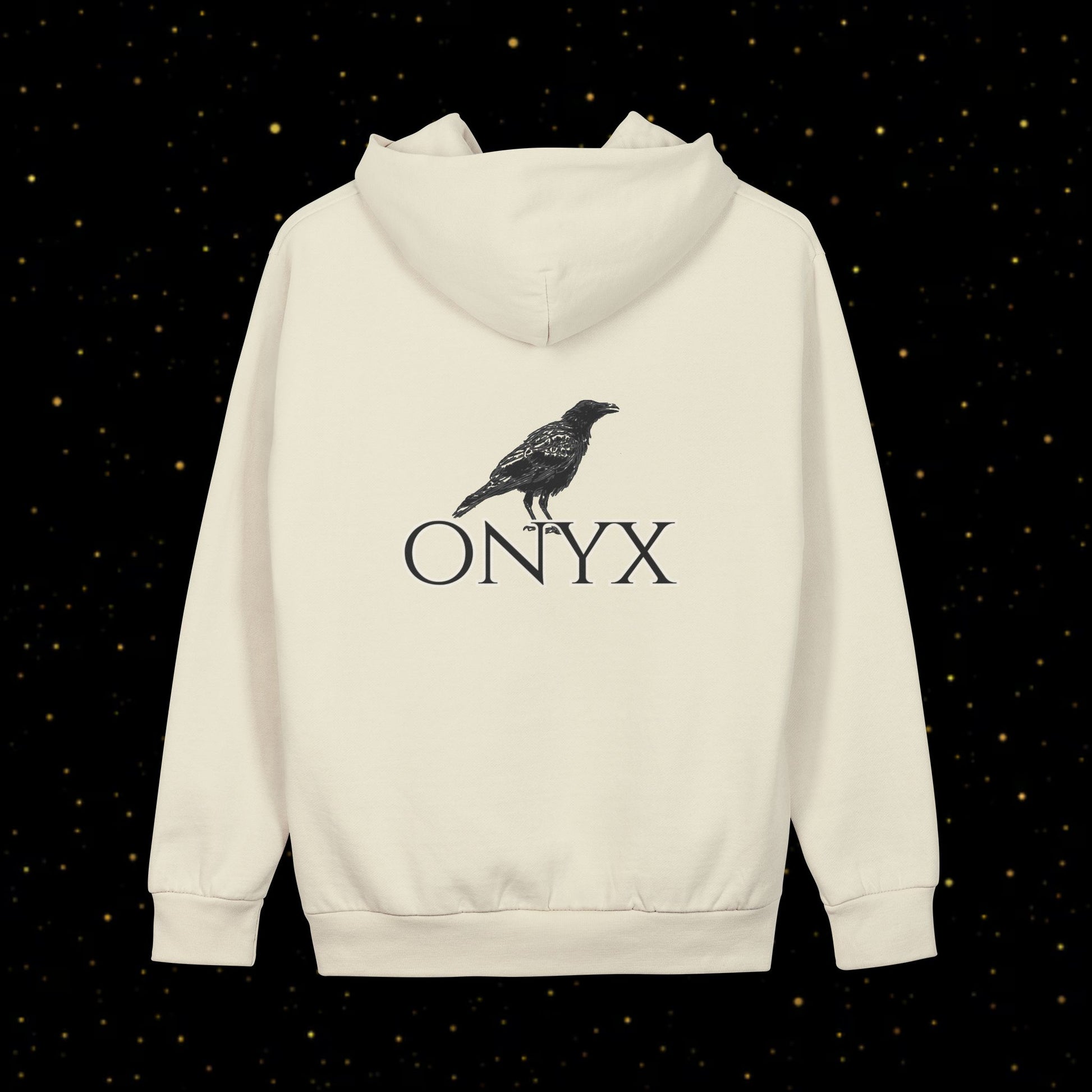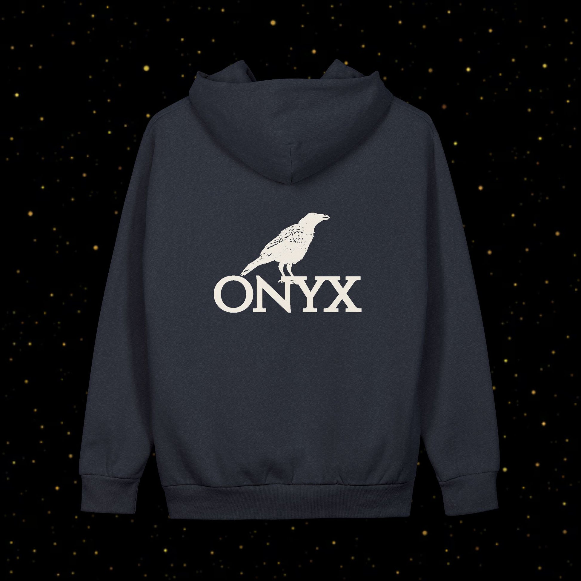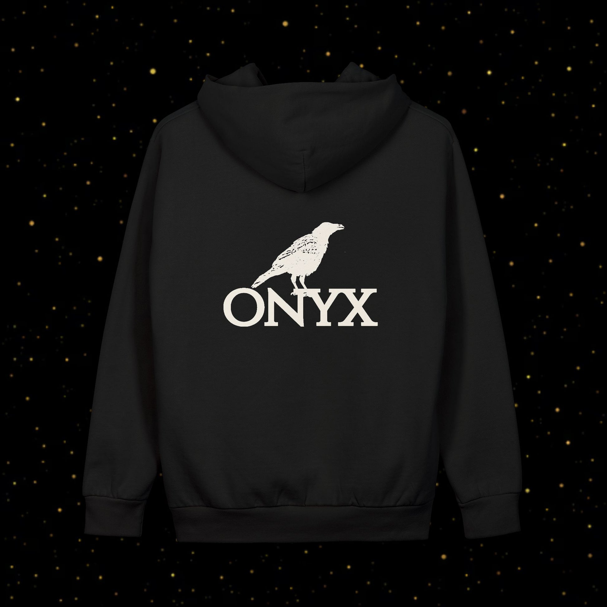 Ein schlichter Streetwear-Hoodie mit minimalistischem Rabenlogo und markantem ONYX-Branding – perfekt für Alltagskomfort und modernen urbanen Style.