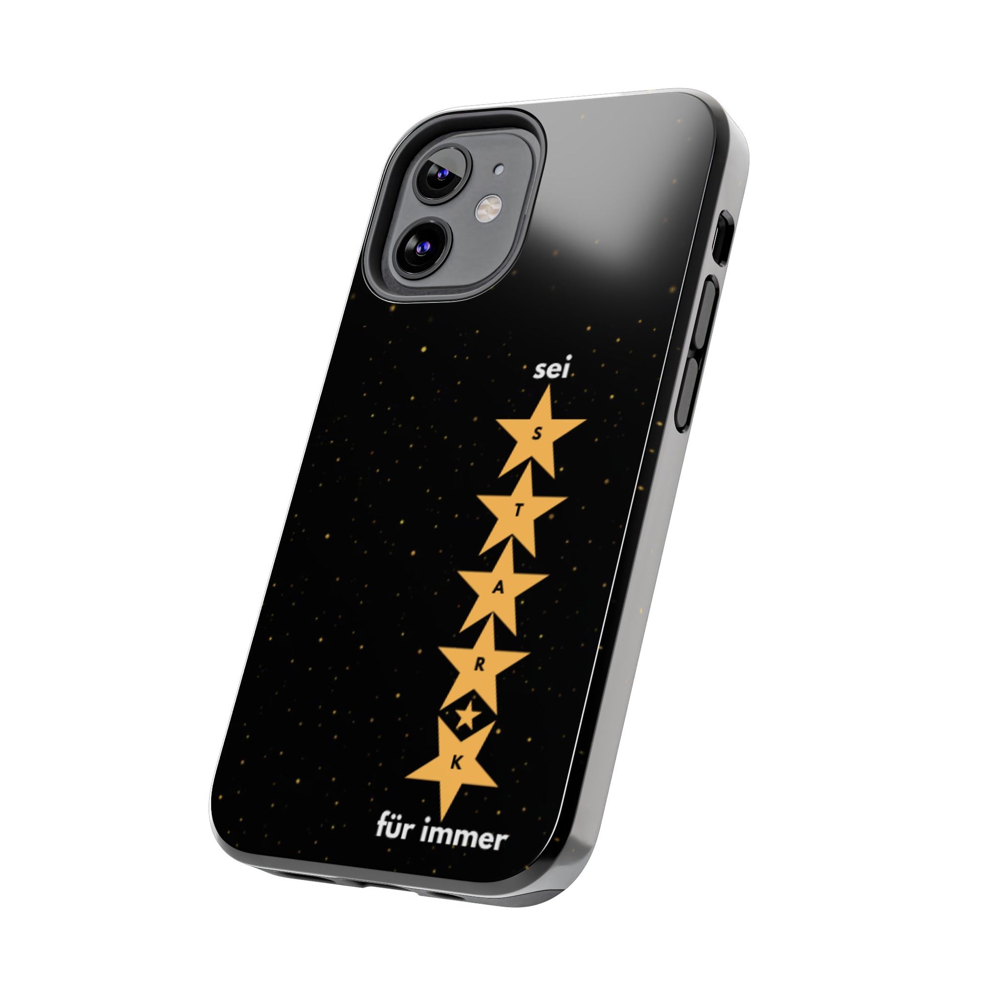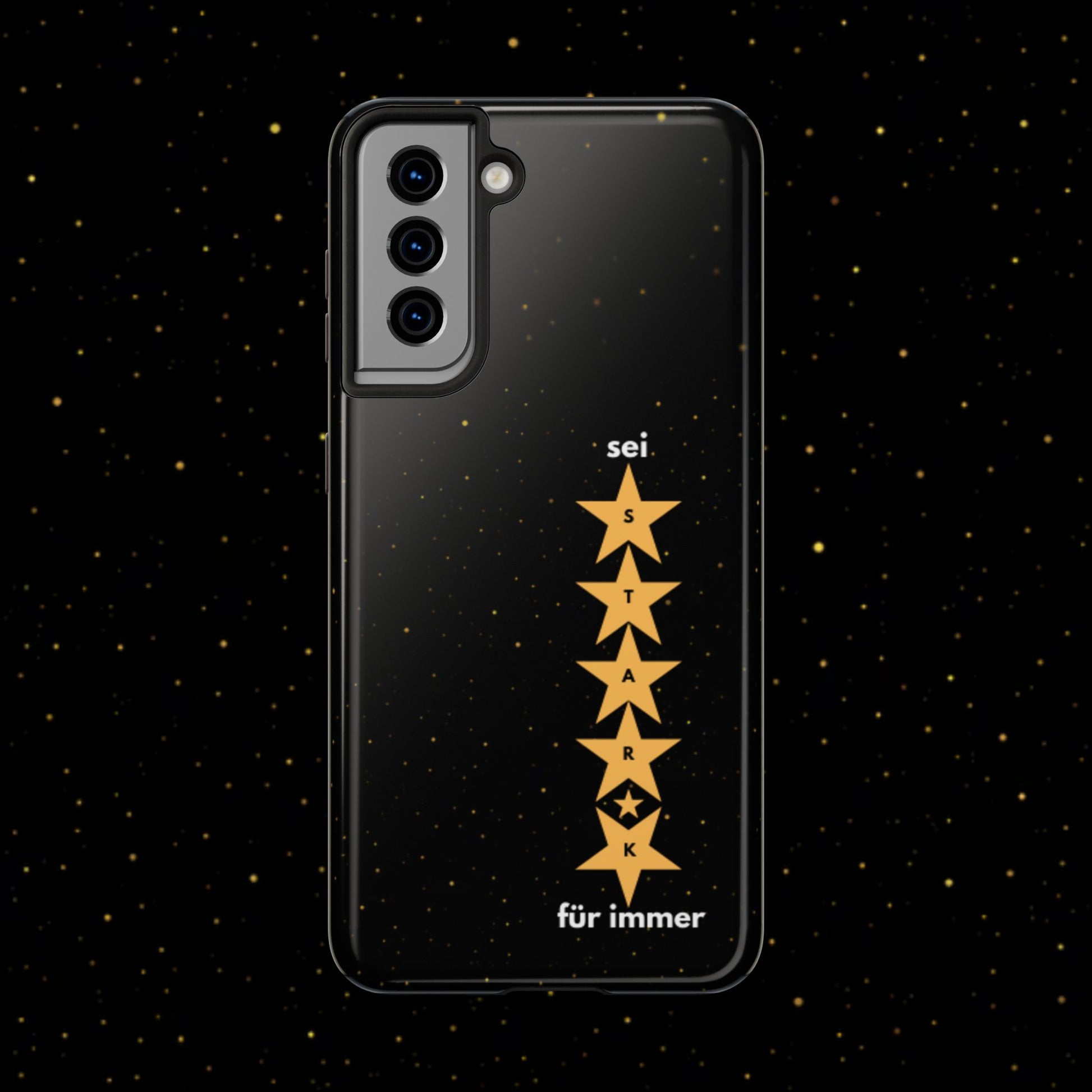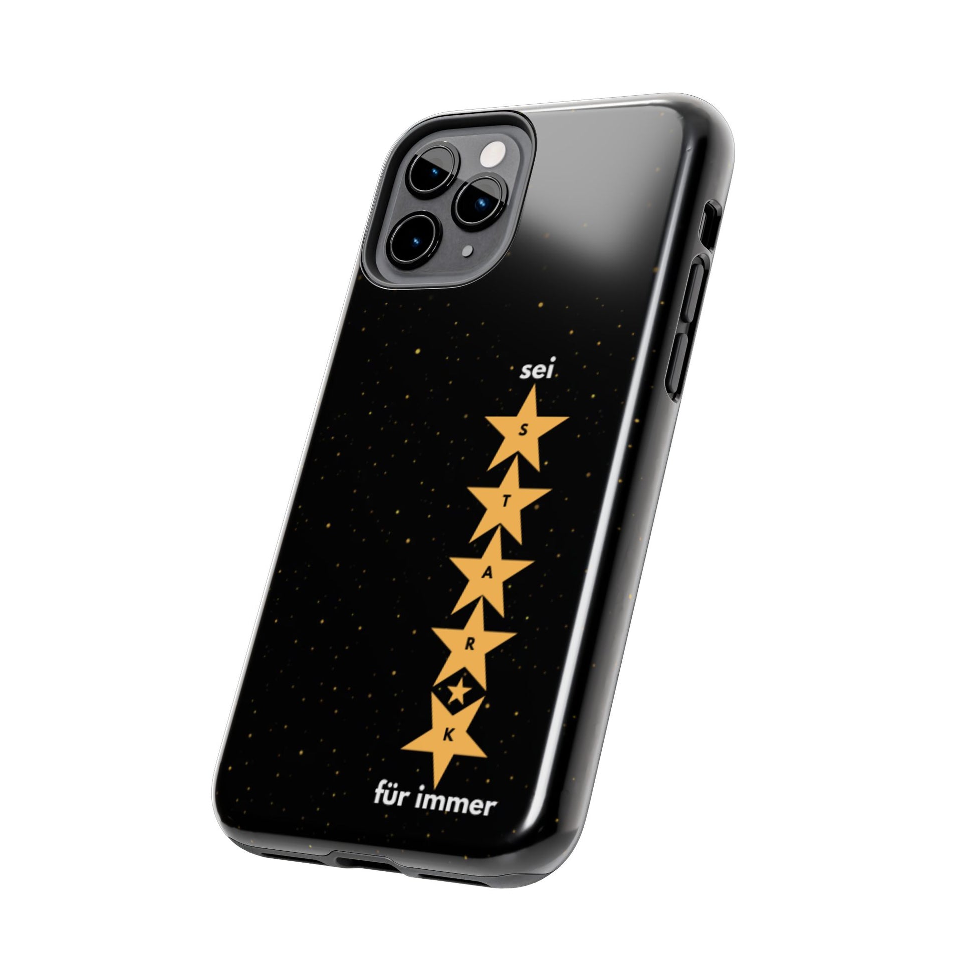 Die STARK Forever Handyhülle vereint ein tiefschwarzes Finish mit goldenen Sternen – ein Symbol für Stärke, Ehrgeiz und Ewigkeit.